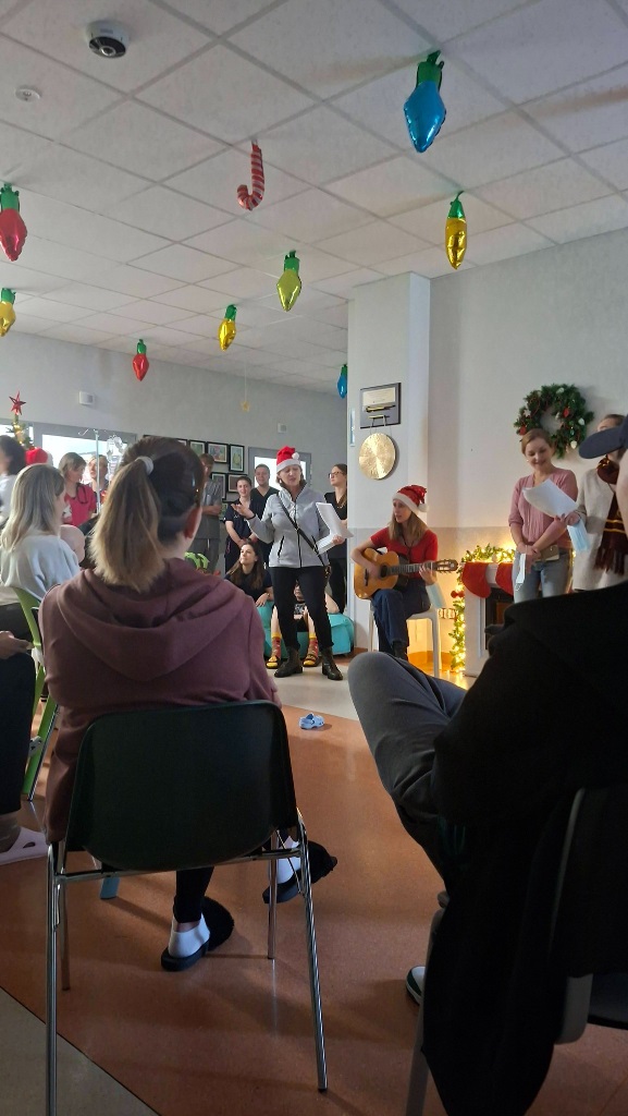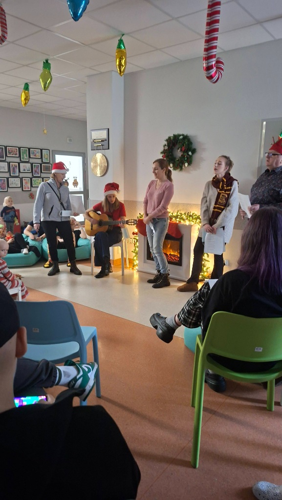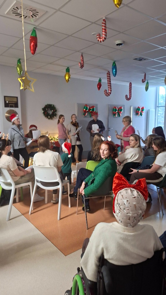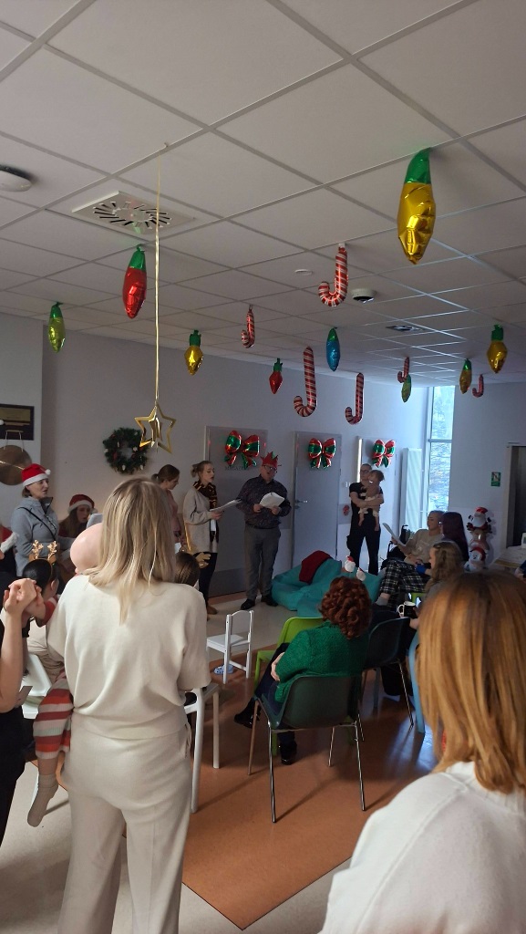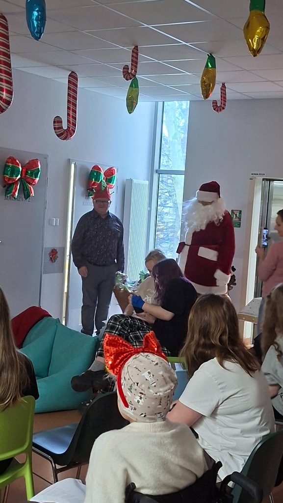 Atmosfera była naprawdę magiczna — pełna serdeczności, uśmiechu i wspólnoty. Niezwykłe Panie, które obdarowały nas swoim śpiewem, przyjechały z gitarą i ogromem dobrej energii. Razem z nimi odwiedził nas Pan Piotr, przewodniczący Zarządu Dzielnicy Ujeścisko–Łostowice, który również wprowadził dużo ciepła w to wyjątkowe wydarzenie. A na koniec… pojawił się Święty Mikołaj! Przyniósł dzieciom prezenty i wywołał mnóstwo radości — jego wizyta była prawdziwą wisienką na świątecznym torcie. Dziękujemy za ten piękny, wspólnie spędzony czas.