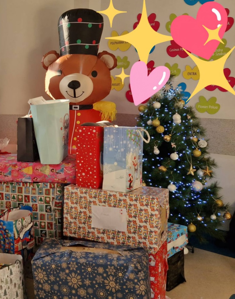 Niestety nie mogli spotkać się z dziećmi, ale zostawili bardzo dużo prezentów, które zostaną przekazane naszym małym pacjentom.